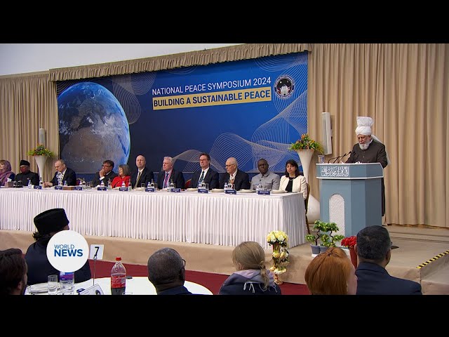 On 9 March 2024, the World Head of the Ahmadiyya Muslim Community, the Fifth Khalifa (Caliph), His Holiness, Hazrat Mirza Masroor Ahmad delivered the keynote address at the 18th National Peace Symposium hosted by the Ahmadiyya Muslim Community UK. The event was attended by more than 1,200 people including more than 550 dignitaries and guests who had gathered from 30 countries, comprising of Ambassadors of State, Members of Parliament and academics.